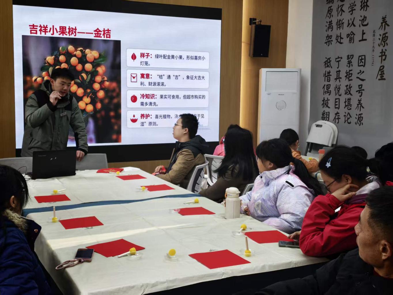 孩子們可在科普研學中了解年宵花學問,并體驗書道寫福、非遺木板印福。為便捷未能登頂的親子家庭,特在眼鏡湖豎立“香爐峰”主題打卡板。