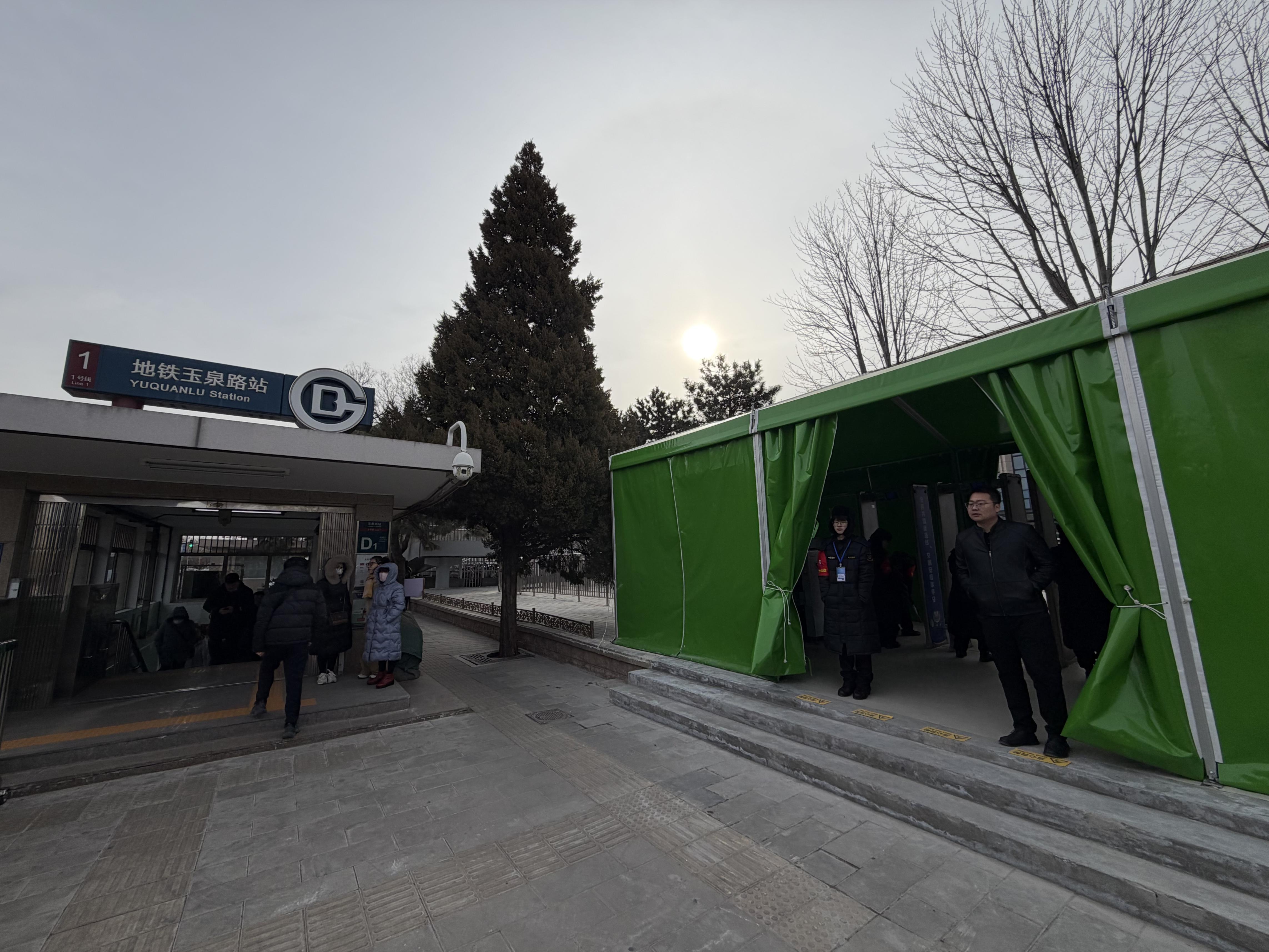 玉泉路站D口外的綠色安檢大棚