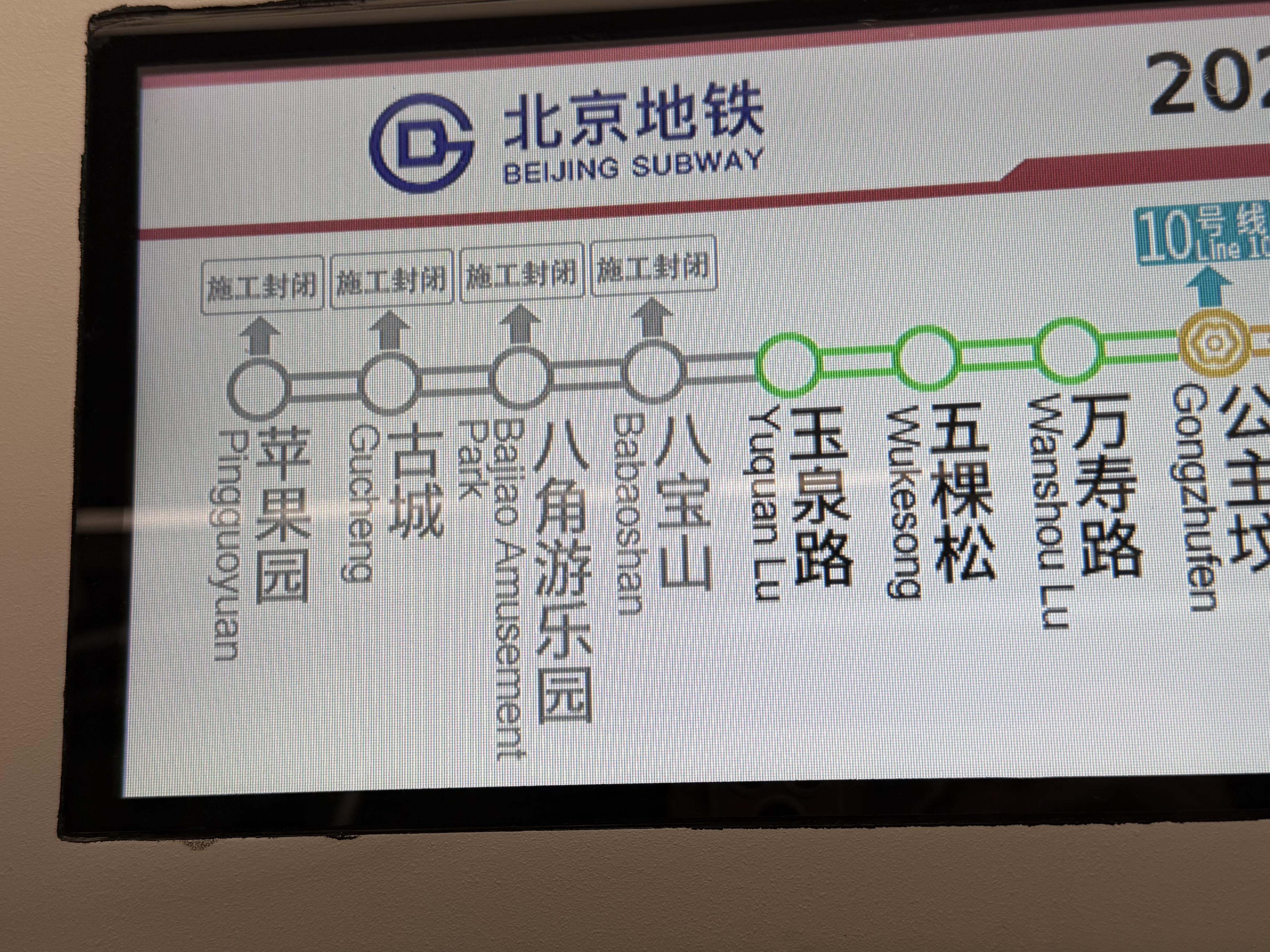 由于地鐵玉泉路進站安檢才能有限,進城標的客流岑嶺時接駁線的部分車次,左證地鐵現場責任主說念主員的攜帶,接駁臨線部分車次可能會行至玉泉路口北落客,乘客可在玉泉路地鐵站B口進站乘坐地鐵。