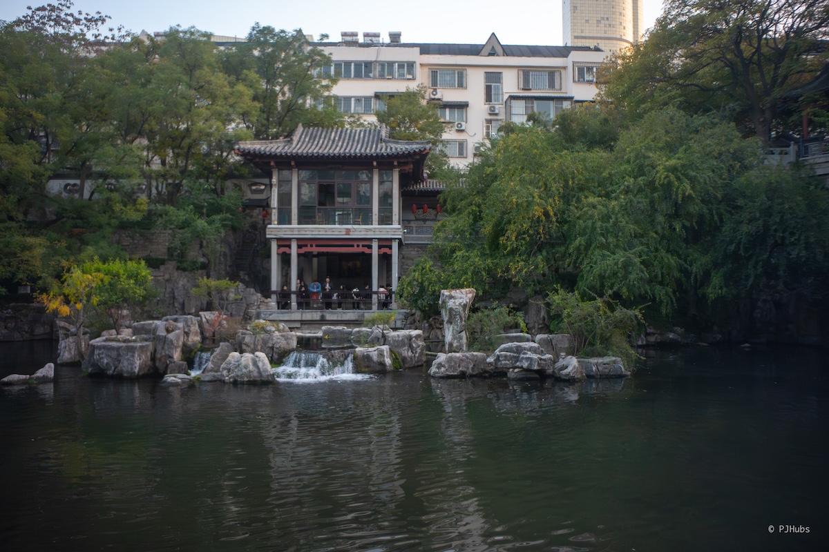 略微失望地走出景區,趵突泉北門外對面等于五龍潭,但我還在試吃趵突泉,不想這樣快的就鄰接下一個泉,好在看到有一家魯菜館東說念主氣很旺,便走向前拿了個號。僅僅沒猜想一個東說念主吃飯也得等 9 桌,估摸著這也得等一小時了,稍加想索后照舊決定午飯延后,先逛了五龍潭。