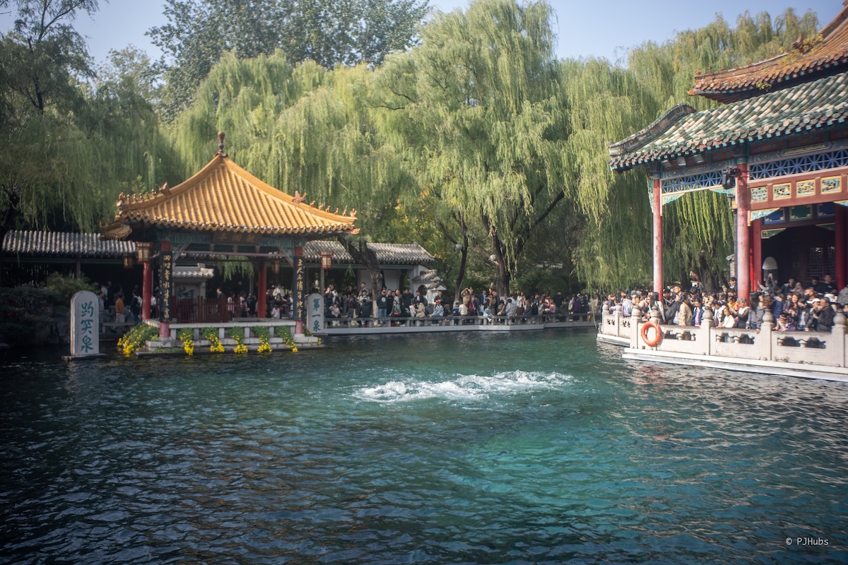 泉城廣場的西邊等于趵突泉,在走向趵突泉南門的路上遠遠眺去,會發現泉水如黑洞一般吸附著一派東說念主群。揣測這泉里得有不少搭客。門票 40 元,最終合座體驗下來不算貴,園區合座除了趵突泉泉眼隔壁的那一小片場地止境擁堵,其余步方倒也還好。為了誘導搭客泉水中放養了多量的錦鯉,前段時刻也庸碌刷到安保教唆搭客不要再喂魚了,皆胖得皆快游不動了。另外如斯脆弱的、永劫刻存在的天然景不雅,濟南政府勢必也會給這個「天地等一泉」多量的補貼,要否則果然有可能咱們這一代東說念主皆見不到了。